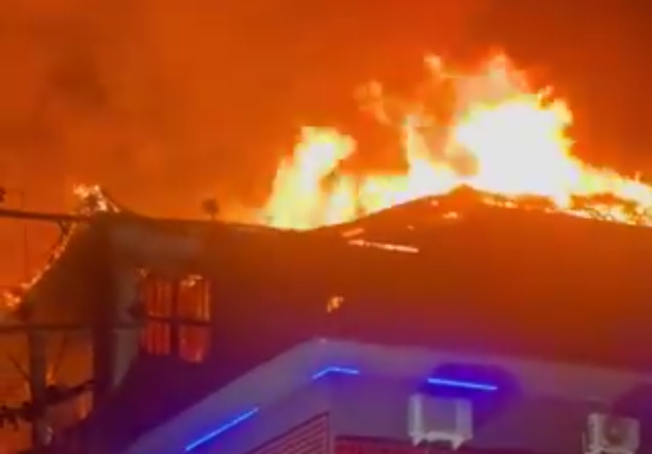 A social media user, @Mister_Mash on X, formerly Twitter, shared a video showing fire burning through the roof of the building.