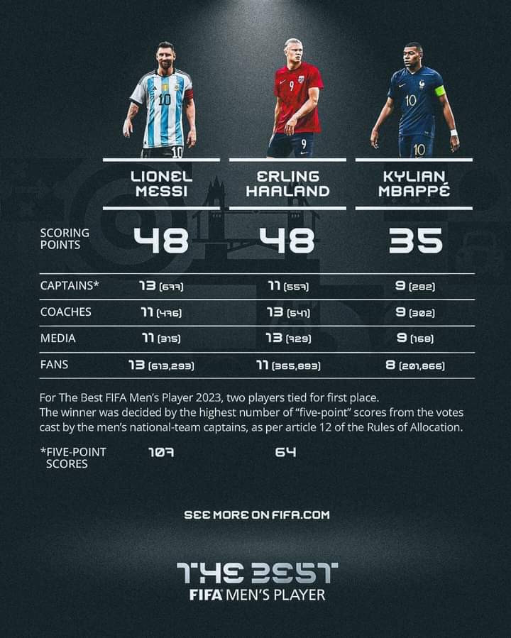 Haaland was favourite to win after scoring 52 times in his debut season with Manchester City, but Messi edged the vote after winning Ligue 1 with Paris Saint-Germain and the Leagues Cup just months after joining Inter Miami.