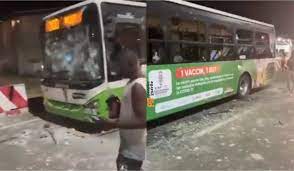 The official bus of the Elephants was also destroyed by the angry protesters.